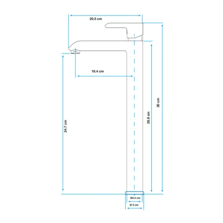 Grifería de lavatorio monocomando alto en negro mate de 25mm con apertura en frío de la serie Alassio II. Combina comodidad y estilo en tu baño.”