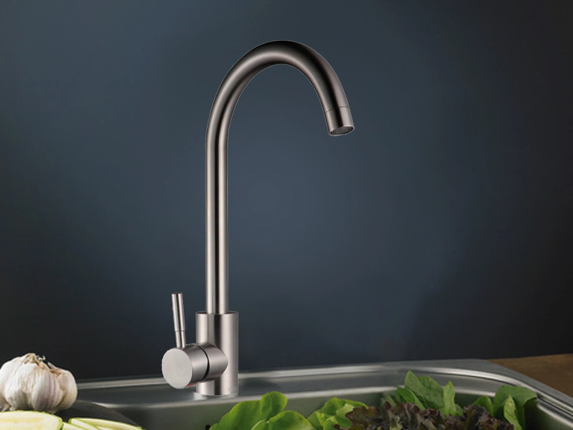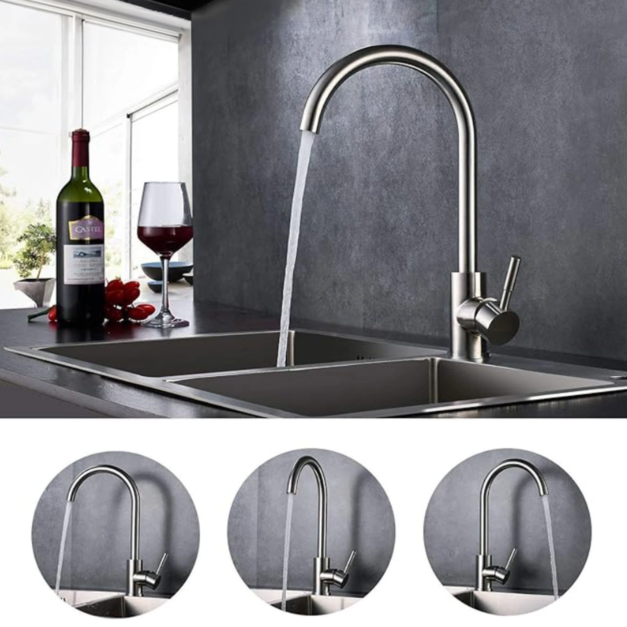 Disfruta de la durabilidad y el estilo con el grifo de cocina de mesada de acero inoxidable 304 serie Almada. Su construcción robusta y su diseño elegante lo hacen perfecto para cualquier cocina moderna. Además, su acabado en acero inoxidable añade un toque de sofisticación a cualquier espacio culinario.”