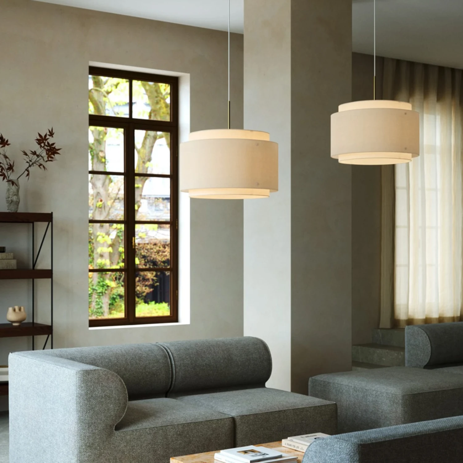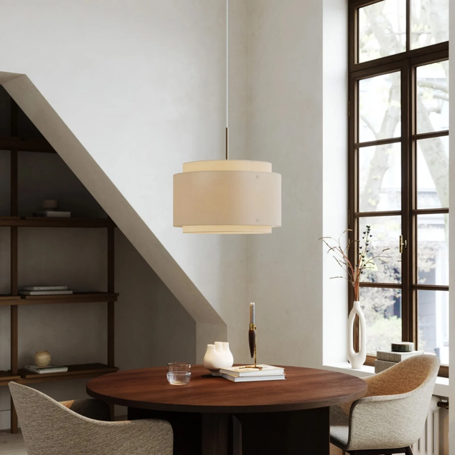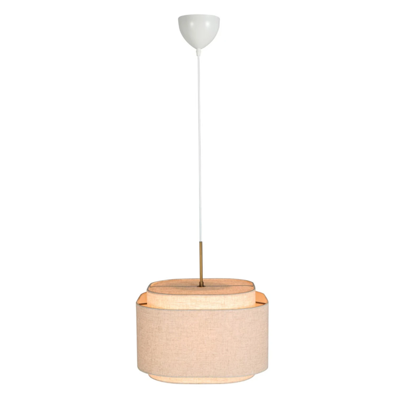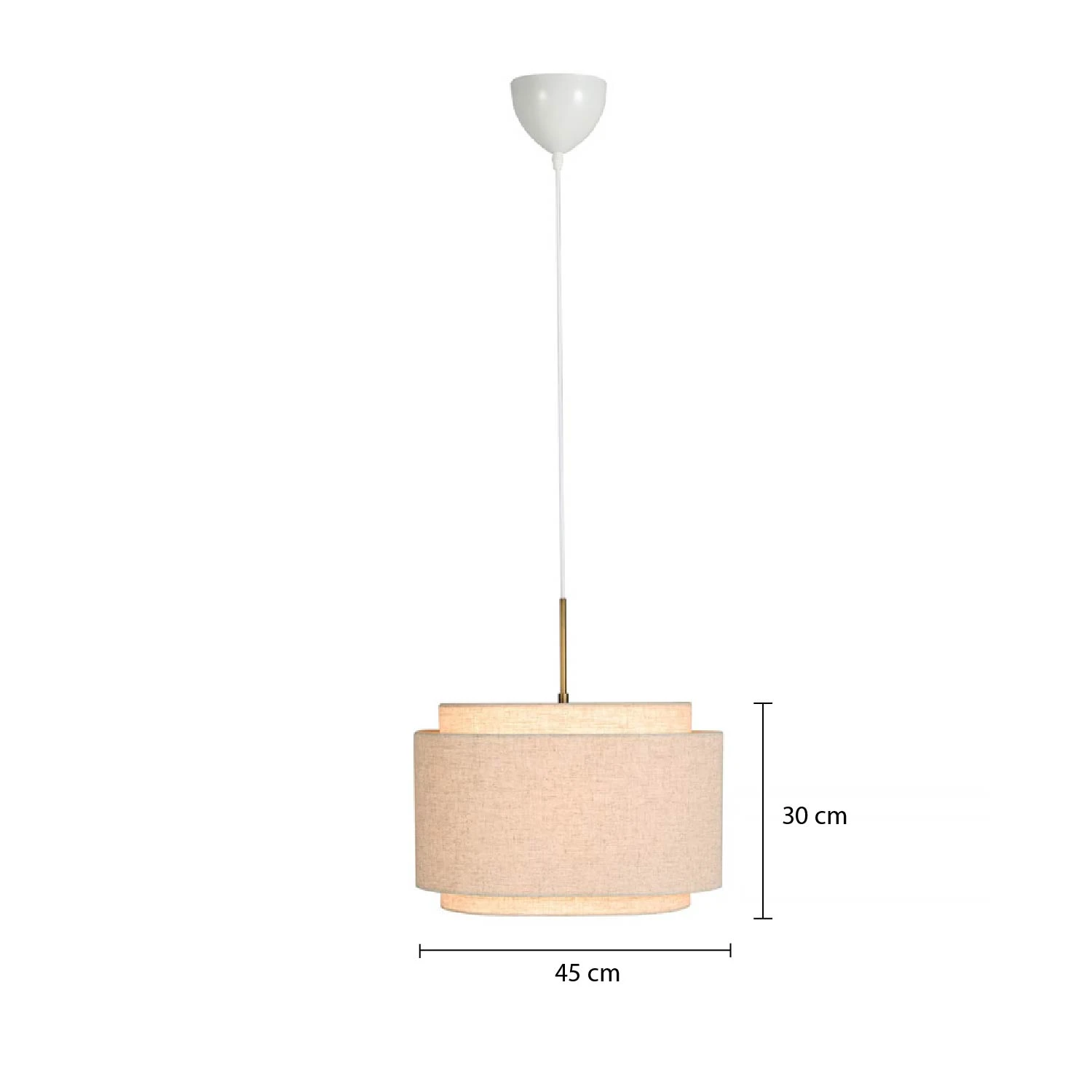 Esta luminaria se distingue por su amplia pantalla de tela color beige, que añade un toque de sofisticación y calidez a cualquier espacio. Su diseño atemporal, que fusiona lo clásico y lo moderno, la convierte en la elección perfecta para iluminar comedores y livings, creando un ambiente acogedor y elegante.